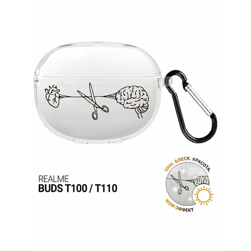Чехол на Realme Buds T300 / T310 с принтом "Мозг плюс сердце" прозрачный