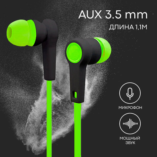 Проводные наушники с микрофоном AUX mini-jack 3.5 mm WALKER H130, игровая гарнитура для компьютера, телефона, на iphone, как jbl на самсунг, зеленые