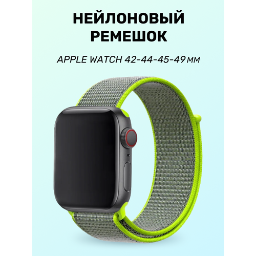 Нейлоновый ремешок для Apple Watch 42/44/45/49 мм / Плетеный браслет на Эпл Вотч 1-10, SE, Ultra, Салатовый
