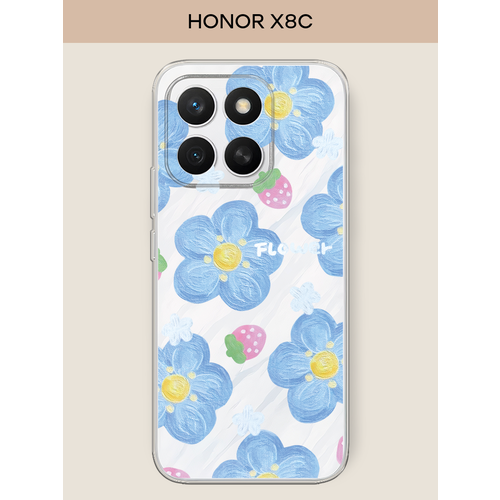 Чехол на Honor X8c / Хонор X8c с принтом Цветы и клубники, прозрачный