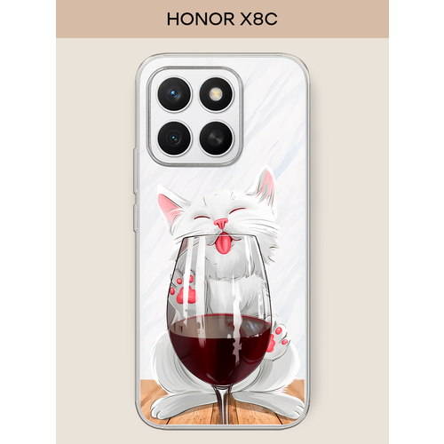 Чехол на Honor X8c / Хонор X8c с принтом Кот с бокалом, прозрачный