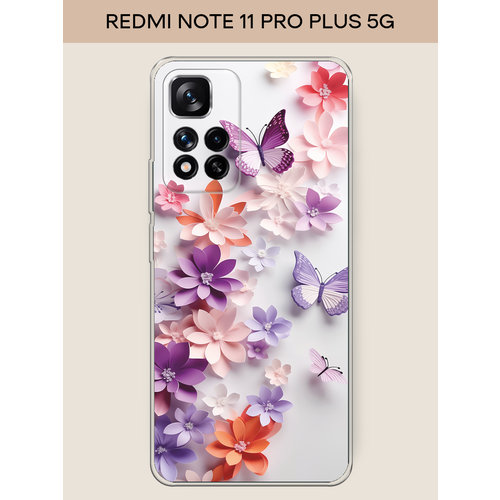 Силиконовый чехол "Фиолетовые бабочки и цветы" на Xiaomi Redmi Note 11 Pro Plus 5G / Сяоми Редми Нот 11 Про Плюс 5G