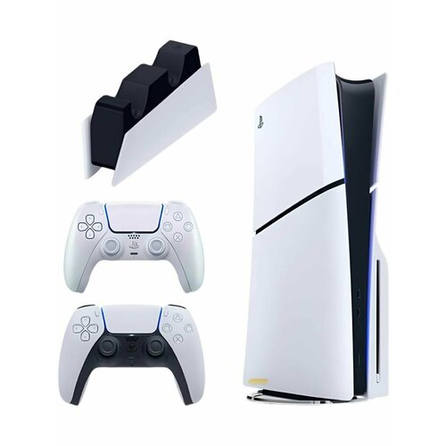 Игровая приставка Sony PlayStation 5 Slim с дисководом + 2й жемчужный хром геймпад и зарядная станция