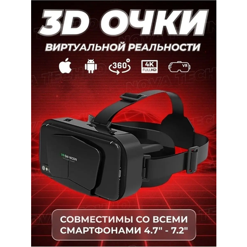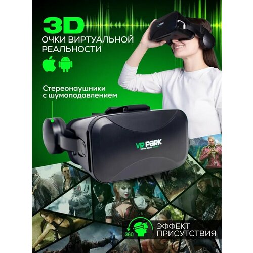 Виртуальные очки для телефона с экраном 4.7"-6.4" со встроенными наушниками/VR очки для игр с 3D эффектом /черные