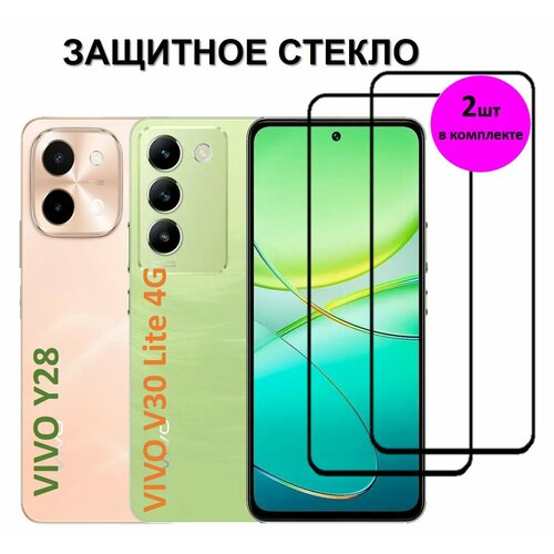 Комплект 2 в 1: Защитное стекло Vivo Y28 / Vivo V30 Lite 4G ( 2 шт ) Виво У28 / Виво В30 Лайт Полноэкранное стекло Full Glue