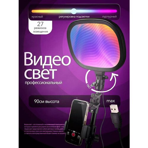 Видеосвет RGB лампа в трех цветах красный синий зеленый VAmobile для видео и фото съёмки с держателем для телефона и пультом