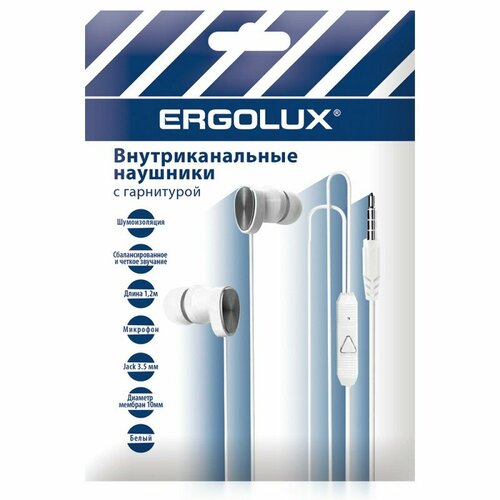ERGOLUX ELX-WHP02P-C01 промо (Наушники вакумные с микрофоном проводные, 3.5мм, 1,2м, Белые, Пакет), цена за 1 шт.