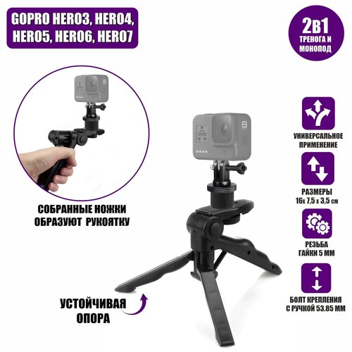 Пластиковое крепление переходник KT-01G для GoPro на настольной треноге-моноподе