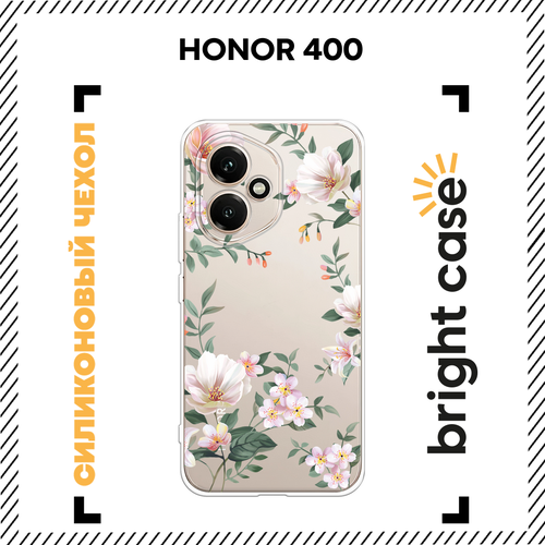 Чехол на Honor 400 / Хонор 400 с принтом С цветами белыми, прозрачный