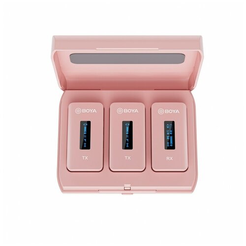 Boya BY-XM6-K2P Компактный двухканальный беспроводной микрофон с зарядным кейсом (Розовый) 1724