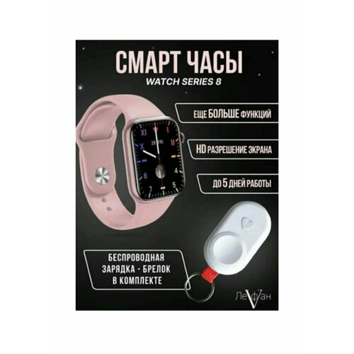 Часы розовые, A8 pro max+, с беспроводной зарядкой-брелок