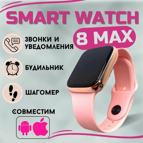 Смарт часы 8 женские мужские умные наручные, розовые с ремешком в подарок