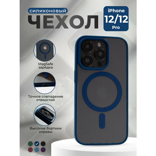 Прозрачный чехол с матовой рамкой для iPhone 12 / 12 Pro, MagSafe, ночной синий