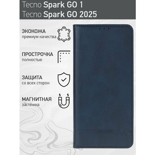 Стильный чехол-книжка для Tecno Spark GO 1 / Tecno Spark GO 2025 (Техно Спарк ГО 1 / Техно Спарк ГО 2025) премиальная защита, функция подставки, отделения для карт, магнитная застёжка
