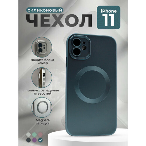 Силиконовый магнитный чехол для iPhone 11, MagSafe, сине-зеленый