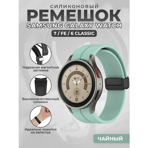 Силиконовый ремешок для Samsung Galaxy Watch 7 / FE / 6 Classic, с черной магнитной застежкой, чайный