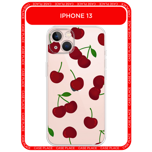 Чехол на Apple iPhone 13 / Айфон 13 с принтом Вишни паттерн 2, прозрачный