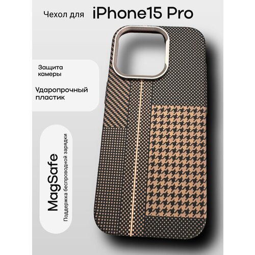 Чехол на IPhone 15 Pro с MAGSAFE под карбон из ударопрочного пластика с защитой камеры