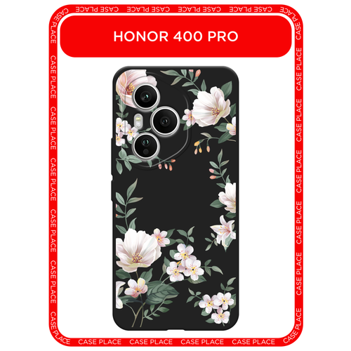Черный матовый чехол на Honor 400 Pro / Хонор 400 Про с принтом Beautiful white flowers