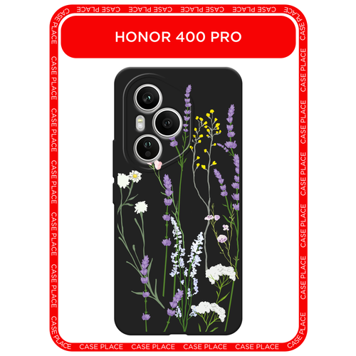 Черный матовый чехол на Honor 400 Pro / Хонор 400 Про с принтом Полевые цветы