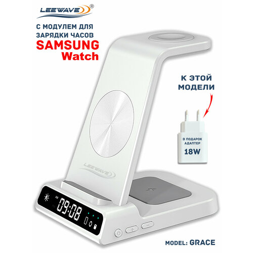 Беспроводная зарядка 3 в 1 для SAMSUNG, док станция QI (GRACE model) Белая