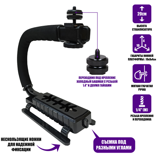 Ручка держатель для камеры DK-AG2 с переходником под крепление "холодный башмак" с резьбой 1.4' и двумя гайками