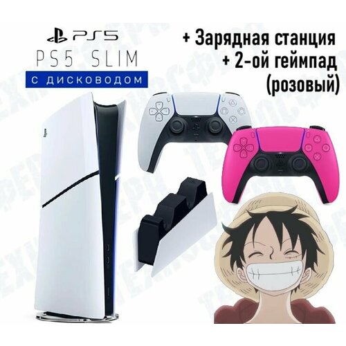 Sony PlayStation 5 Slim, с дисководом, + 2й , розовый геймпад PS5 и зарядная станция