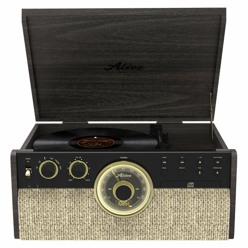 Виниловый проигрыватель Alive Audio Great Gatsby Dark Wood (CD, FM-радио, кассетник, Bluetooth, встроенные динамики)
