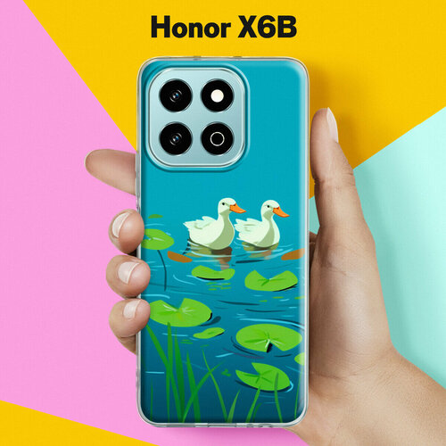 Силиконовый чехол на Honor X6B с принтом "Гуси на воде" с прозрачными бортиками