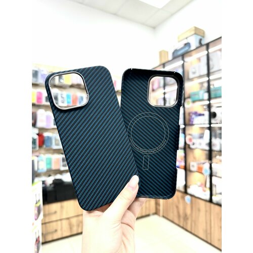 Карбоновый чехол iPhone 16 pro max с защитой камеры и поддержкой беспроводной зарядки MagSafe / Чехол из кевлара iPhone 16 pro max