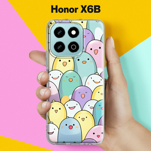 Силиконовый чехол на Honor X6B с принтом "Попугаи" с прозрачными бортиками
