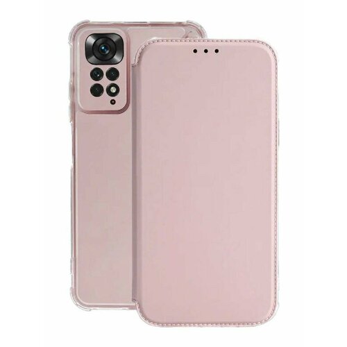 Чехол-книжка на Xiaomi Redmi Note 11 c противоударным бампером с усиленными углами на редми нот 11 розовый
