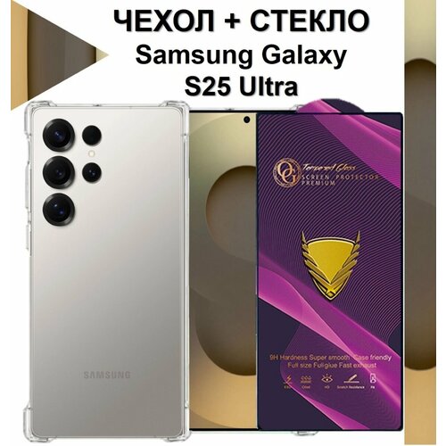 Комплект 2 в 1: Чехол с защитой камеры и углов + полноэкранное стекло для Samsung Galaxy S25 Ultra / Галакси С25 Ультра