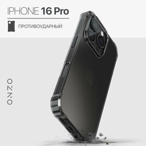 Противоударный чехол на iPhone 16 Pro / Айфон 16 Про бампер черный прозрачный