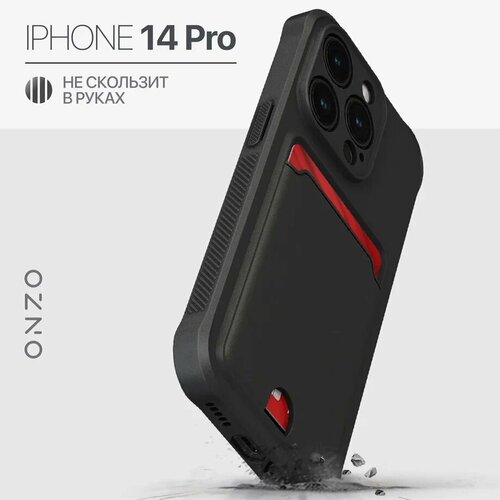 Матовый чехол на iPhone 14 Pro / Айфон 14 Про с усиленными углами, с карманом для карт