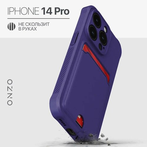 Противоударный чехол для iPhone 14 Pro / Айфон 14 Про с отделением для карты, матовый