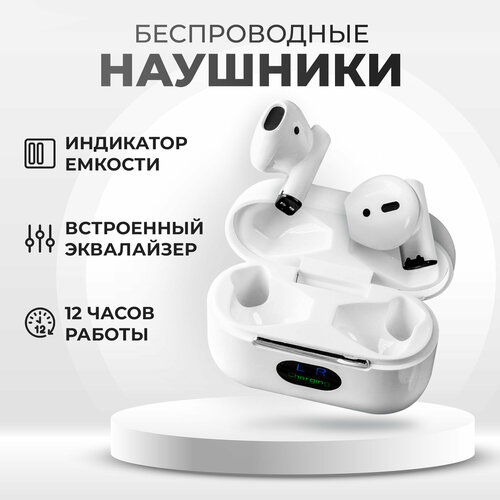 Беспроводные наушники МИНИ Bluetooth с микрофоном, сенсорное управление, индикатор заряда, WALKER, WTS-53, гарнитура TWS для телефона Android, белые
