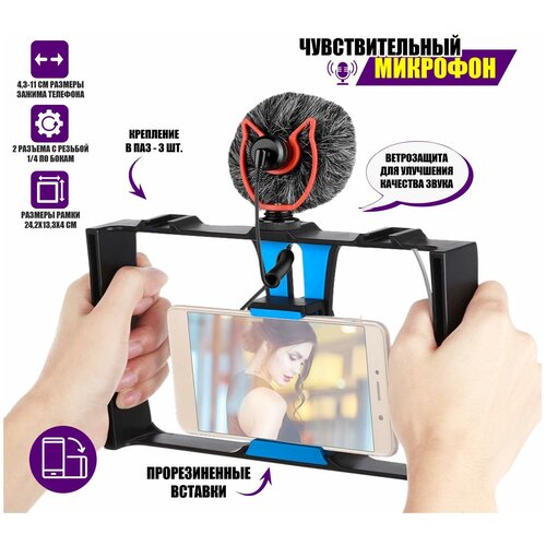Держатель клетка для телефона, стабилизатор для камеры с 3 креплениями в паз и резьбой 1/4