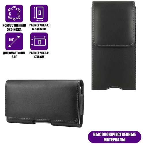 Набор чехлов-кобура на ремень для смартфона 6.0", вертикальный и горизонтальный, черные, 2 шт