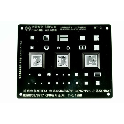 Трафарет BGA IC Mijing T-0,12mm Mi-2 Xiaomi Redmi Note 4X/Redmi 4A/4/5A/5 Plus/S2/5X/MAX2/MSM8953/8917/SDM450-B01-CPU Samsung A025