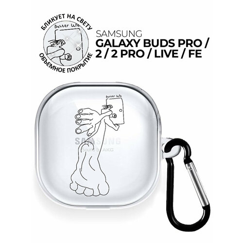 Чехол на Samsung Galaxy Buds Pro / 2 / 2 Pro / Live / FE с принтом "Лучшая жизнь" прозрачный