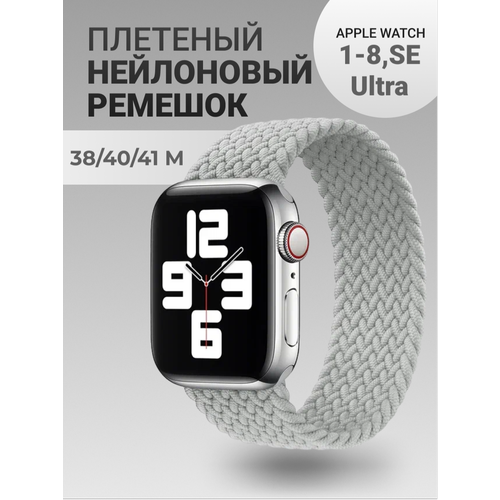 Нейлоновый ремешок для Apple Watch Series 1-9, SE, SE 2 и Ultra, Ultra 2; смарт часов 38 mm / 40 mm / 41 mm; размер M (145 mm); светло-серый