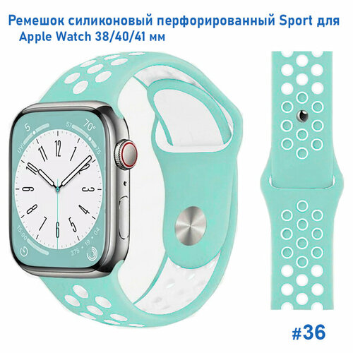 Ремешок силиконовый перфорированный Sport NK для Apple Watch 38/40/41 мм, на кнопке, бледно-бирюзовый+белый (36)