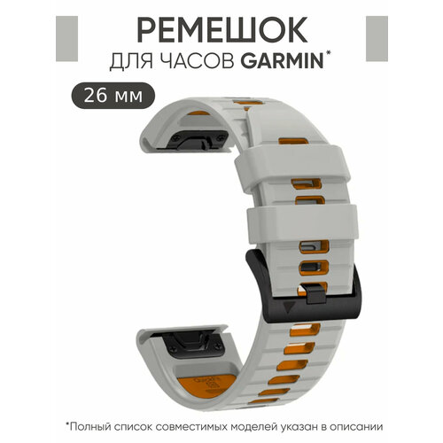 Ремешок для часов Garmin Fenix 8, QuickFit 26, Spark Orange/Graphite Silicone, дизайн 2024 года (010-13393-01)