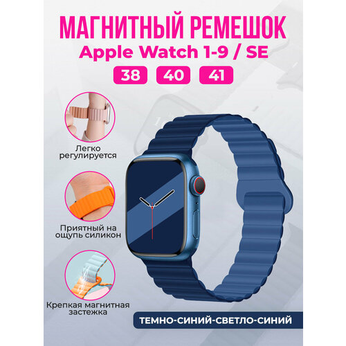 Магнитный силиконовый ремешок для Apple Watch 1-9 / SE / SE 3 (38/40/41 мм), 11, S10/S11, 42 мм, темно-синий-светло-синий
