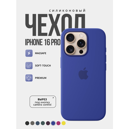 Чехол силиконовый для iPhone 16 Pro, с поддержкой беспроводной зарядки, Soft touch, цвет ультрамарин