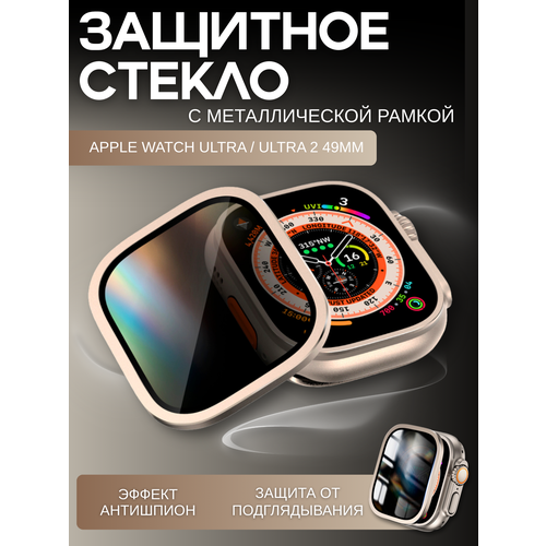 Защитное стекло для Apple Watch Ultra 49mm / Эпл Вотч Ультра 49мм с металлической рамкой Антишпион серый титан