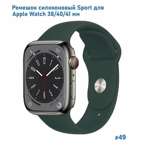 Ремешок силиконовый Sport для Apple Watch 38/40/41 мм, на кнопке, темно-зеленый (49)