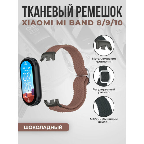Тканевый ремешок для Xiaomi Mi Band 8/9/10, регулировка по длине, шоколадный