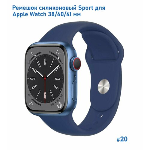 Ремешок силиконовый Sport для Apple Watch 38/40/41 мм, на кнопке, темно-синий (20)